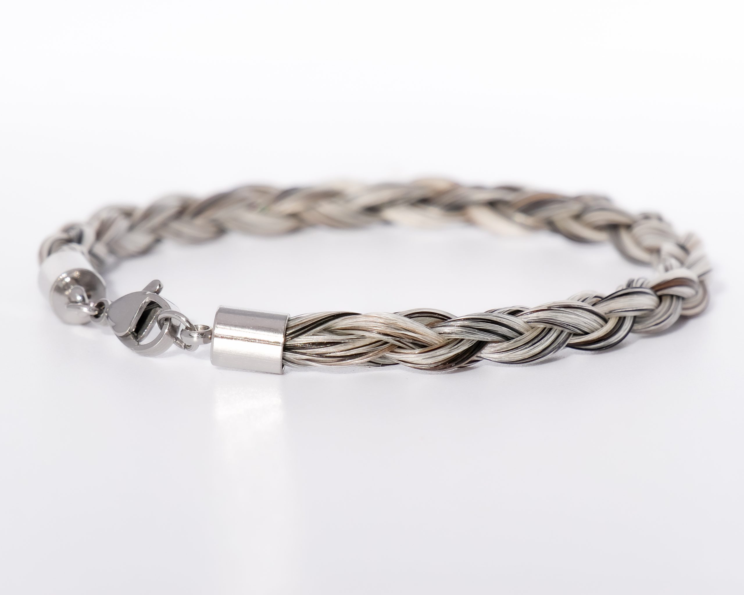 Ce bracelet mixte en crins est conçu méticuleusement grâce à un fermoir mousqueton en acier inoxydable.