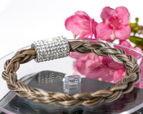 Ce bracelet en crins est conçu méticuleusement grâce à un fermoir magnétique en acier inoxydable entièrement orné de cristaux.